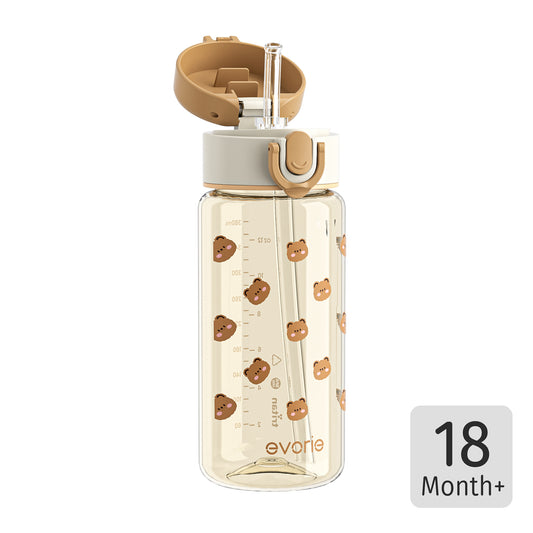 • Evorie Tritan Kids Straw Water Bottle 380mL, Honey Bear