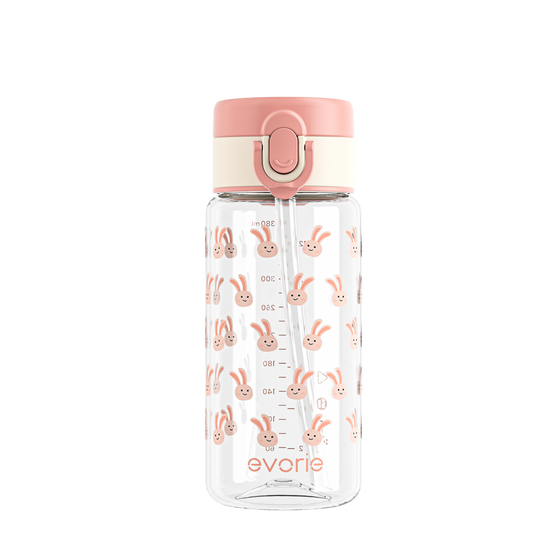 Evorie Tritan Kids Straw Water Bottle 380mL, Sweet Pink