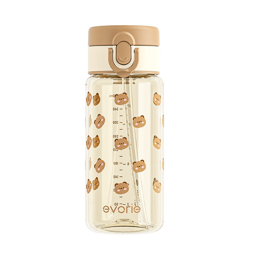 Evorie Tritan Kids Straw Water Bottle 380mL, Honey Bear