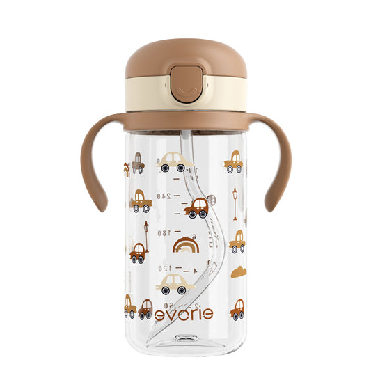 Evorie Tritan Kids Straw Water Bottle Mug 300mL, Choco Car