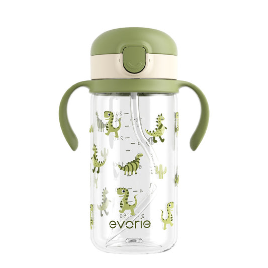 Evorie Tritan Kids Straw Water Bottle Mug 300mL, Green Dino