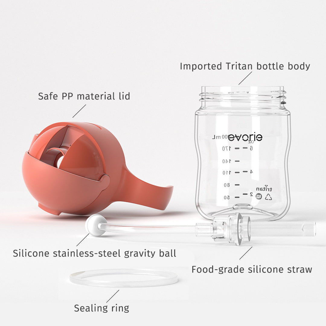 Evorie Tritan Baby 360 Straw Water Bottle Sippy Cup 200mL, Coral Red