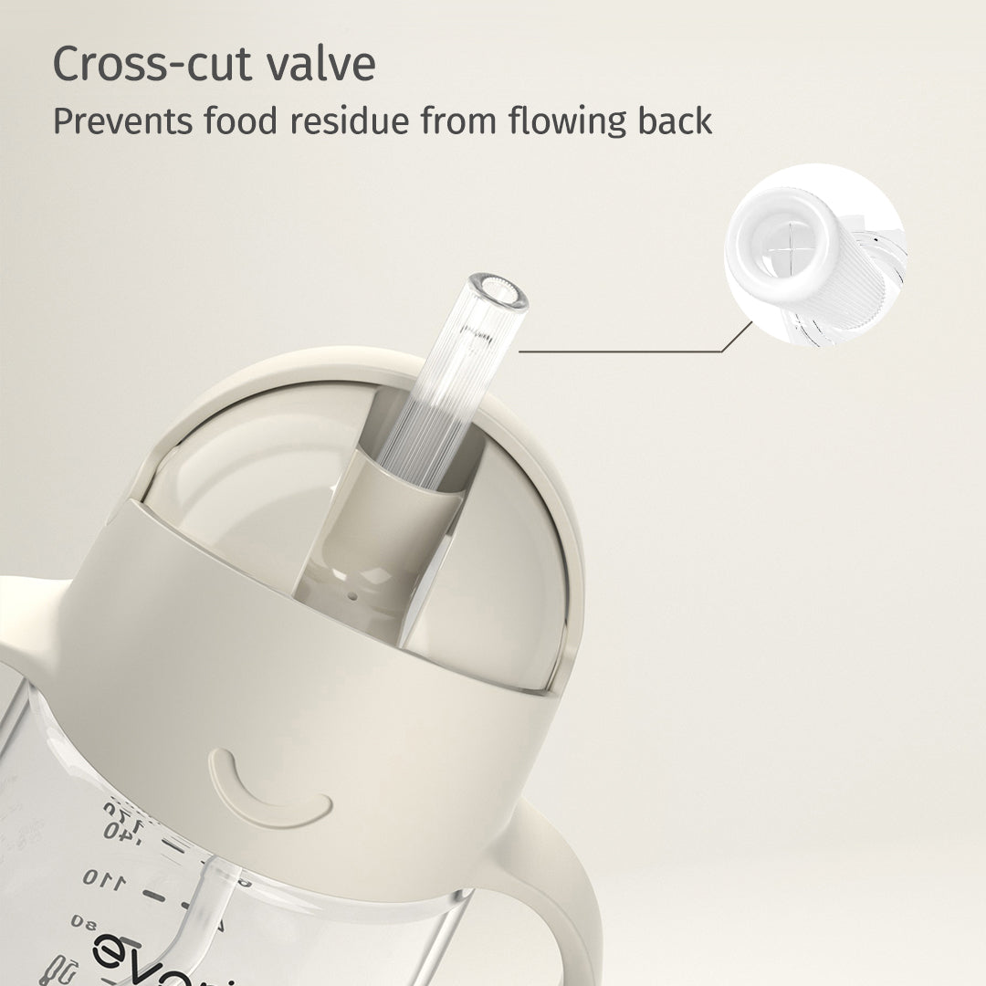 Evorie Tritan Baby 360 Straw Water Bottle Sippy Cup 200mL, Cream Beige