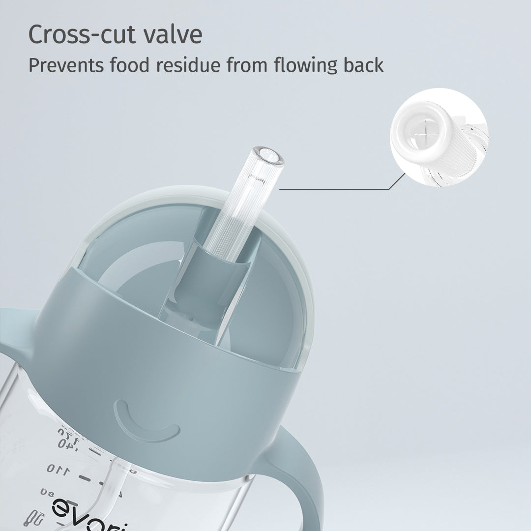 Evorie Tritan Baby 360 Straw Water Bottle Sippy Cup 200mL, Lake Blue