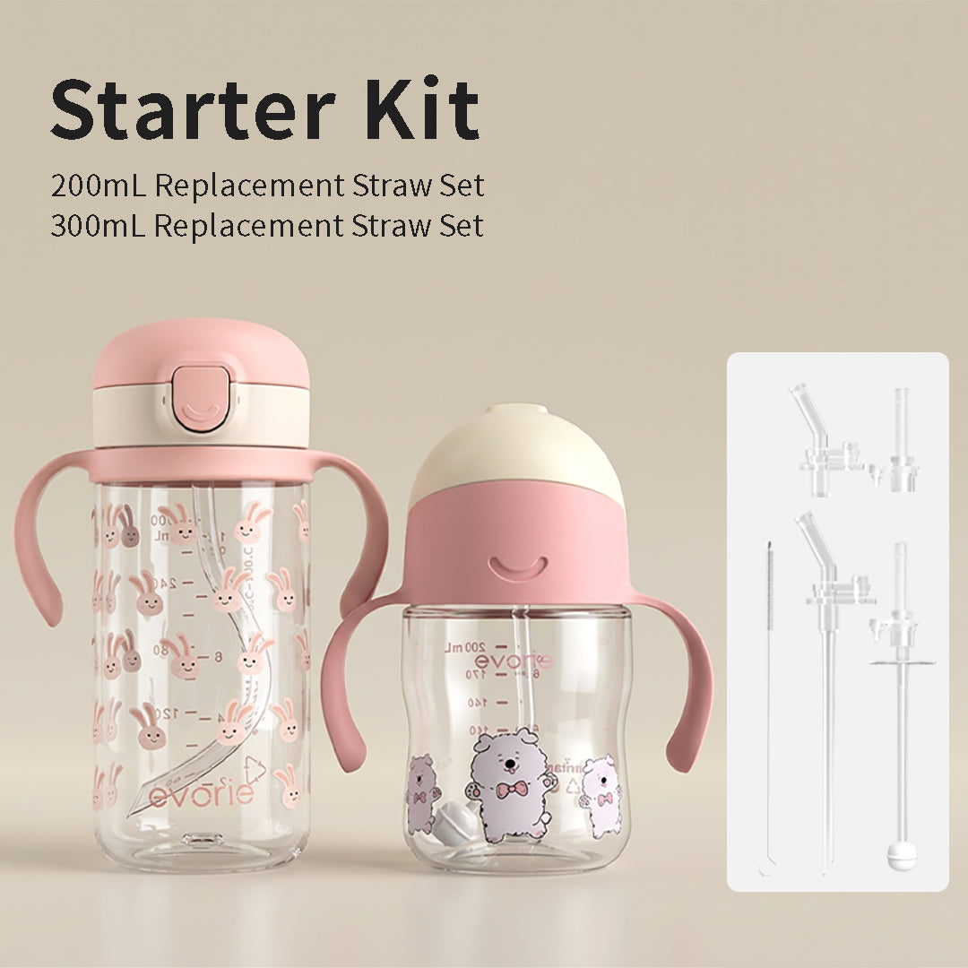 Evorie Tritan Kids Straw Water Bottle Mug DOES NOT feature a weighted straw, unlike our 200mL sippy bottles. This model is perfect for toddlers and kids for outdoor and school use.