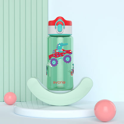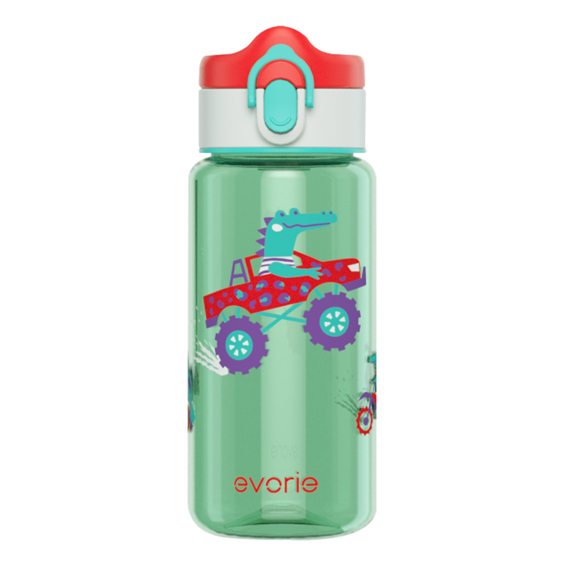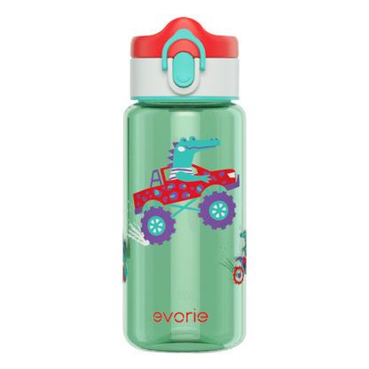 Evorie Tritan Kids Drinking Spout Water Bottle 380mL, Green Alligator